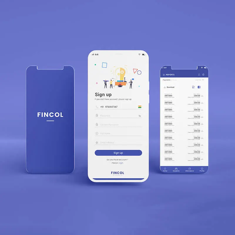 Fincol was developed as a comprehensive Android application that allows enterprises to manage fees, track attendance, and generate reports effortlessly. The app features a responsive interface and integrates with a web-based CMS for easy administrative control. Performance, scalability, and cross-platform compatibility were prioritized to ensure a smooth experience for both business staff and end users.