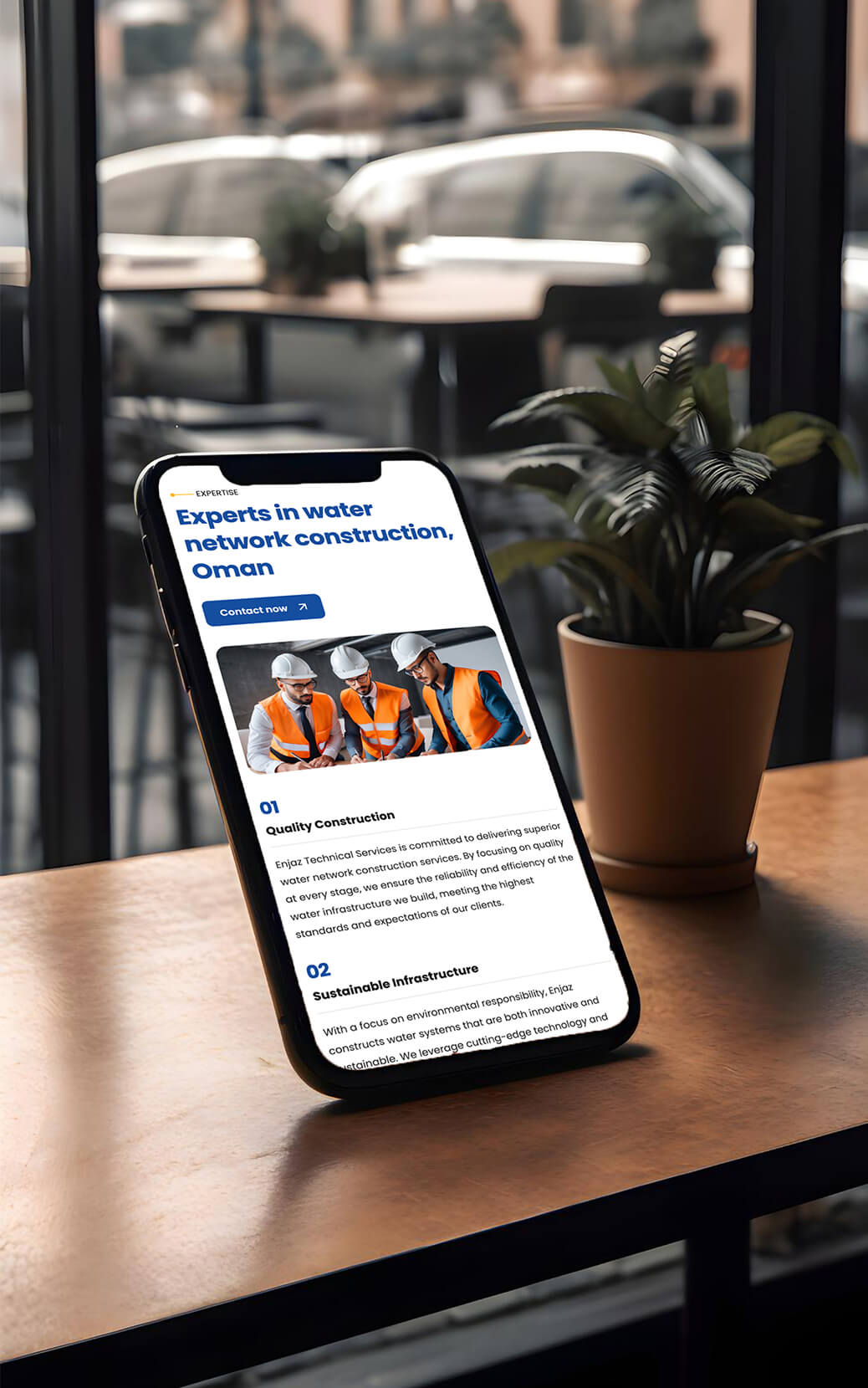 A custom responsive website was designed and developed to reflect Enjaz Technical Services’ engineering excellence and commitment to sustainable infrastructure. The site provides structured service pages, project highlights, and company information that clearly conveys capabilities in potable water networks, sewage systems, operation and maintenance, SCADA/PLC integration, and more. Contact interfaces were integrated to facilitate business enquiries and client engagement.